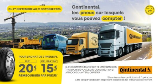 Du 2 juin au 31 juillet 2025, pour l’achat de 2 pneus poids lourds Continental, profitez de 25€ HT remboursés […]