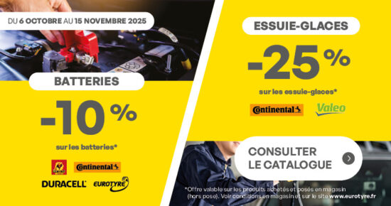 Promo entretien auto : Batteries et Essuie-glaces Du 6 octobre au 15 novembre 2025, profitez de la promotion Entretien auto hiver […]