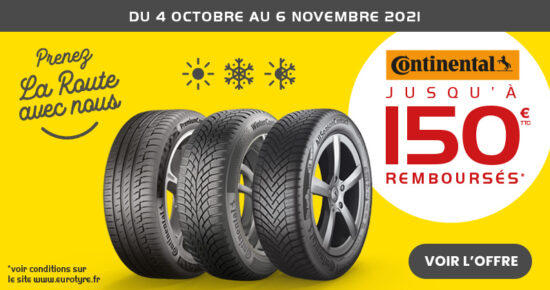 Du 04 octobre au 06 novembre 2021, jusqu’à 150€ remboursés* pour l’achat de pneumatiques Continental été, hiver ou toutes saisons. […]